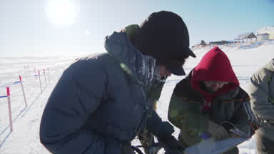 Paige Drobny and Ryan Redington race within sight of each other on the Yukon River, heading to Galena from Ruby.