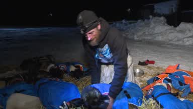 Jessie Holmes pulls into Kaltag for the second time. While here, Jessie must complete his mandatory 8-hour rest before he can continue to the coast.