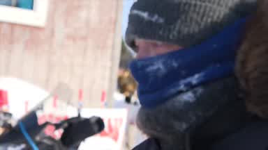 Jessie Holmes is the first musher to arrive at the White Mountain checkpoint. He arrived with 11 dogs on the line.
