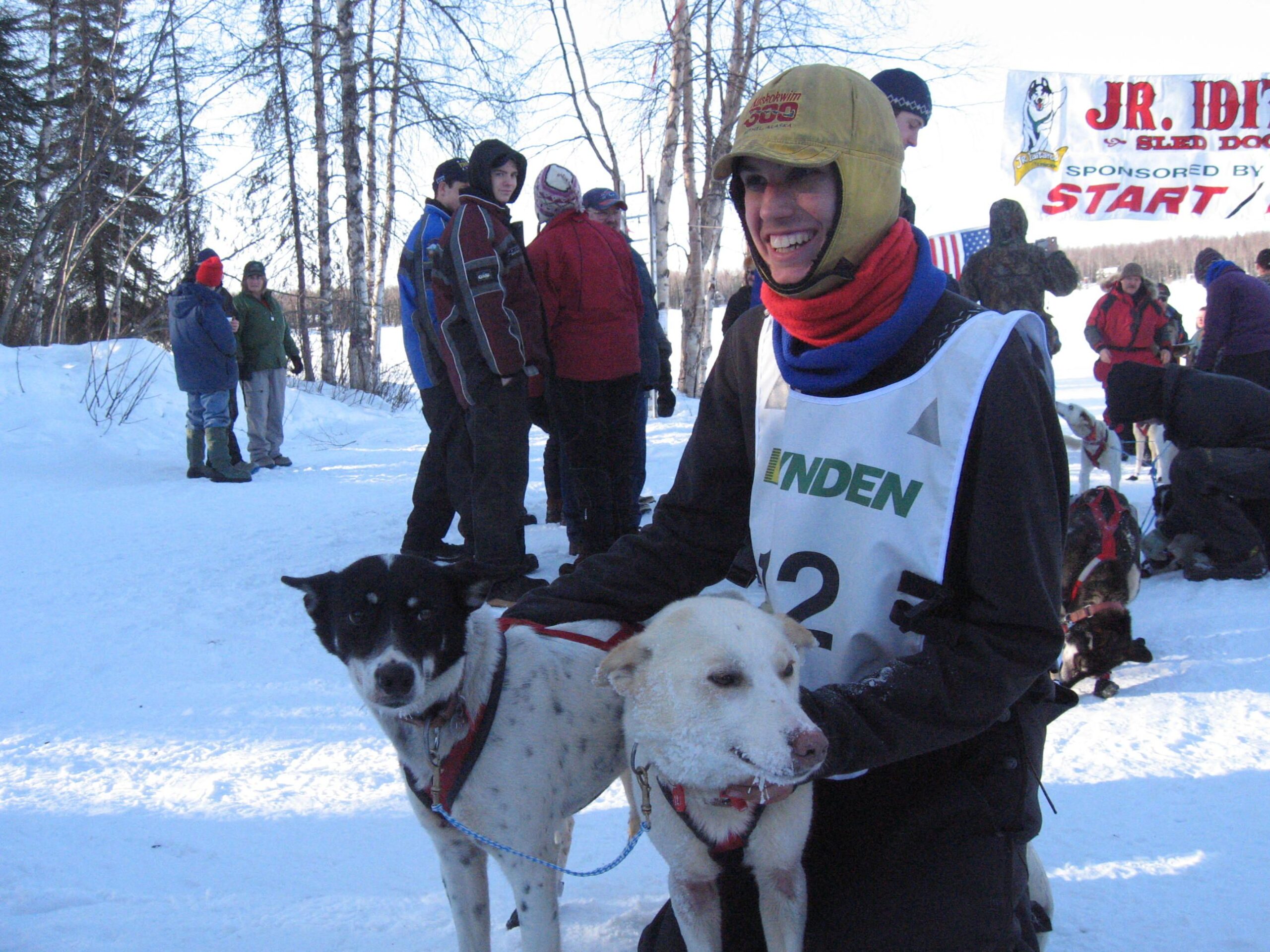 The Sunday telephoto from the Junior Iditarod was taken at the finish line. When 17 year old, Jeremiah Klejka crossed the finish line; nobody was more surprised than he to realize that he’d just won the Junior Iditarod. Seems that the two leaders out of Yentna took a wrong turn off the river adding a few extra miles to their race. Klejka ran a nice steady race thinking he was still behind them. It wasn’t until the finish that he learned of their detour and his victory. Click to enlarge the photos.